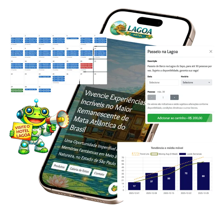 Tudo o que você para organizar, gerenciar e acelerar as vendas do seu negócio. Para pousadas, guias, agências, atrativos, experiências e comércio locais.
