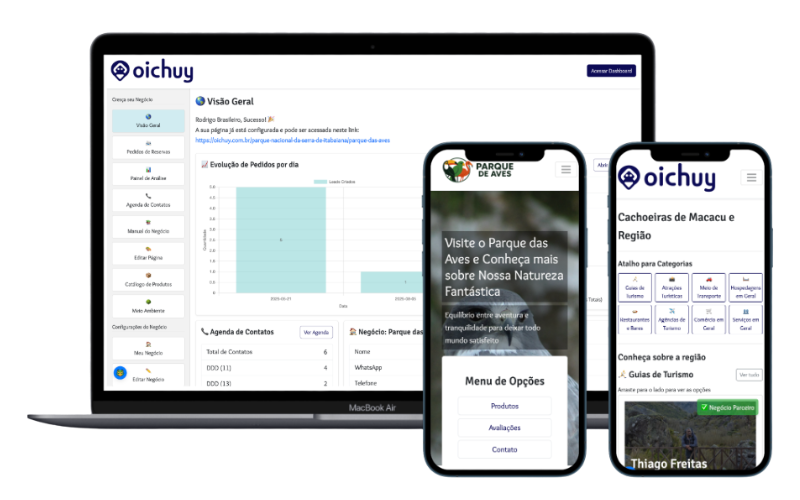 Painéis, catálogo, IA, tráfego pago e CRM simples para organizar seu negócio de turismo, atender rápido e converter mais reservas.